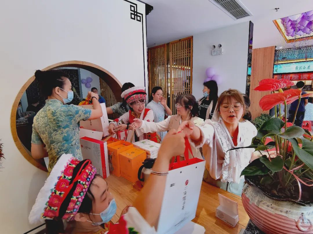 舞獅點睛之后,領導及嘉賓入店,參觀桑植白茶行政中心旗艦店及桑植白茶政協委員工作室,欣賞了桑植白茶茶藝表演,品鑒了湘豐桑植白茶春茶